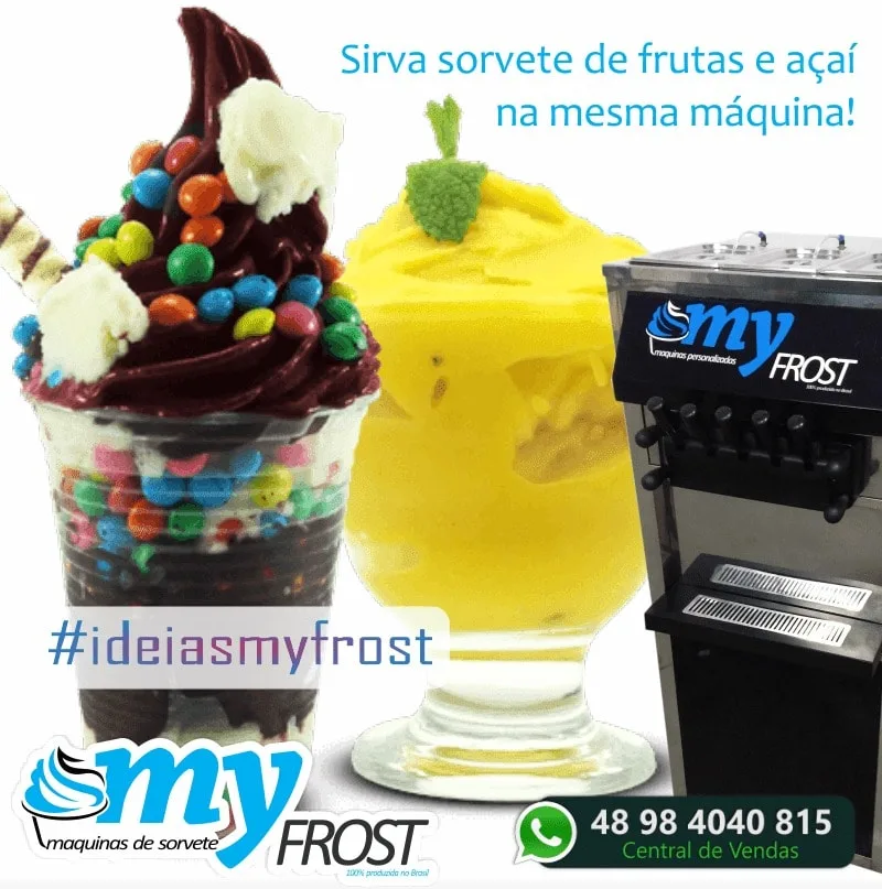 A My Frost é fabricante de Máquina de Sorvete Expresso Soft e Máquinas de Açaí e também para sorvete de frutas naturais! Central de vendas 48 98 4040 815